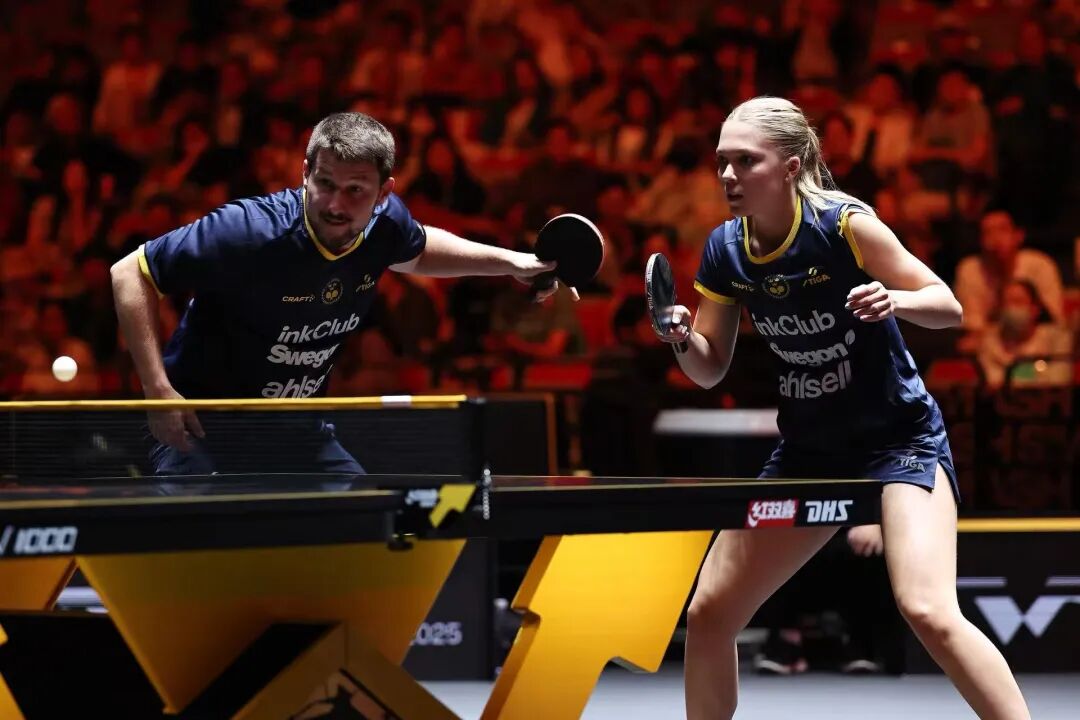 第一局,国乒组合率先发动并取得4-2的开局,随后瑞典组合开始发动,并连续得分8-6反超了比分,落后的国乒组合在发接发上做出调整,连得5分11-8先拔头筹。